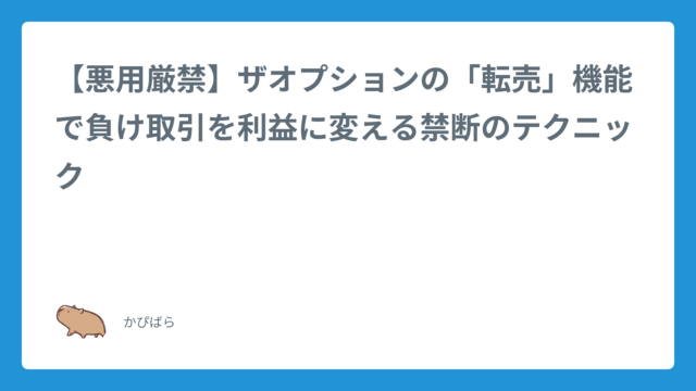 トレード手法【悪用厳禁】ザオプションの「転売」機能で負け取引を利益に変える禁断のテクニック 2025年8月29日 かぴばら ハイ&ロー研究所 「ああ、エントリーした瞬間に逆行した…このまま全額没収か…」「利益は出ているけど、この後の経済指標発表で全部ひっくり返されそうで怖い…」 …