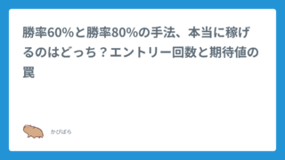 トレード手法勝率60%と勝率80%の手法、本当に稼げるのはどっち?エントリー回数と期待値の罠 2025年8月31日 かぴばら ハイ&ロー研究所 もし、あなたの目の前に二人のトレーダーが現れたとします。トレーダーA:「私の手法の勝率は、驚異の80%です」トレーダーB:「私の手 …