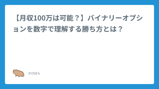 資金管理これは読むべき!【月収100万は可能?】バイナリーオプションを数字で理解する勝ち方とは? 2025年8月25日 かぴばら ハイ&ロー研究所 「バイナリーオプションで月100万円稼ぎました!」 「あなたも私のように自由な生活を手に入れませんか?」SNSを開けば、きらびやか …
