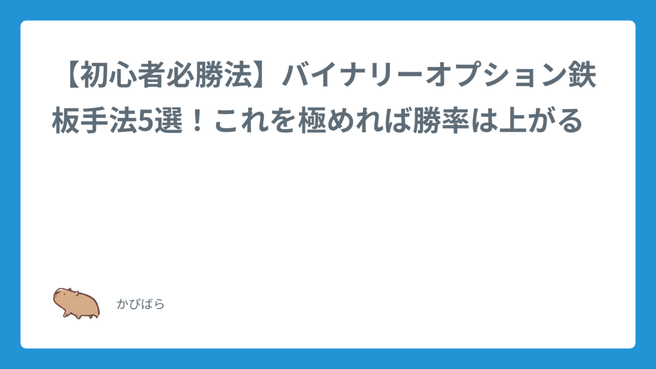 【初心者必勝法】バイナリーオプション鉄板手法5選!これを極めれば勝率は上がる